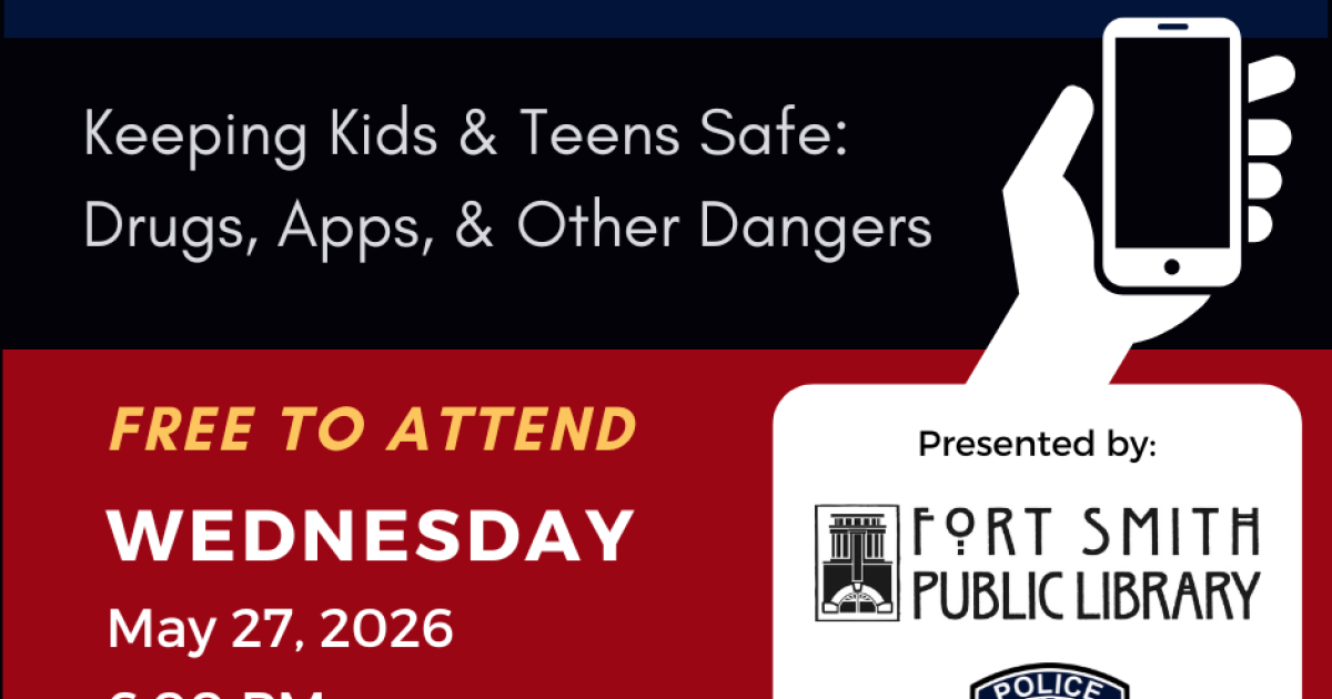 The Fort Smith Police Department will lead a crime prevention class at the Main Library focusing on illicit drugs, dangerous phone apps, and other dangers facing kids and teens. This class will help parents better understand the risks facing youth today, including emerging drug trends and apps that can expose kids to dangerous situations.